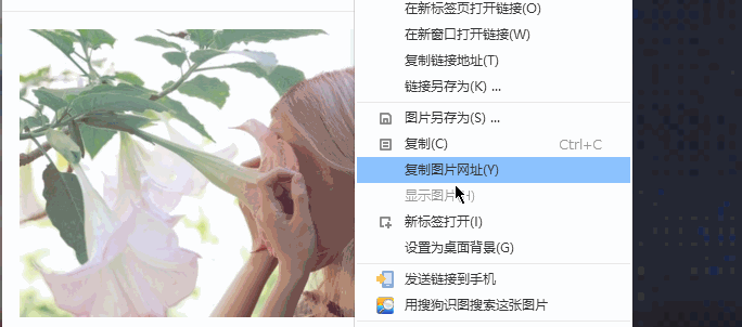 ❷在图片上点击鼠标右键,选择复制图片网址。