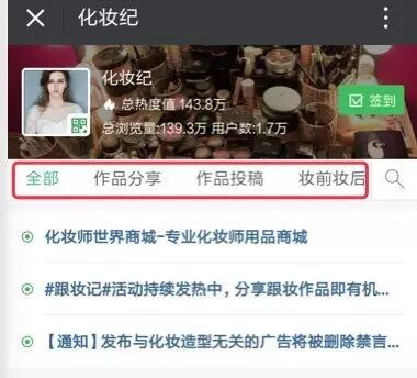 而“美妆社区”是化妆纪在运营过程中一直寻找的微信粉丝圈,这是搭建在公众号里解决化妆师互动、交流的一个论坛。在社区里,配合公众号的运营,设置了作品分享、作品投稿、妆前妆后、跟妆记等版块;又同时将公众号里的大量用户逐渐引导到论坛,延伸了互动交流、活跃留存。