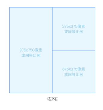9、列表样式:一大两小(卡片1) 图片尺寸(一大):710*710像素 图片尺寸(两小):350*350像素
