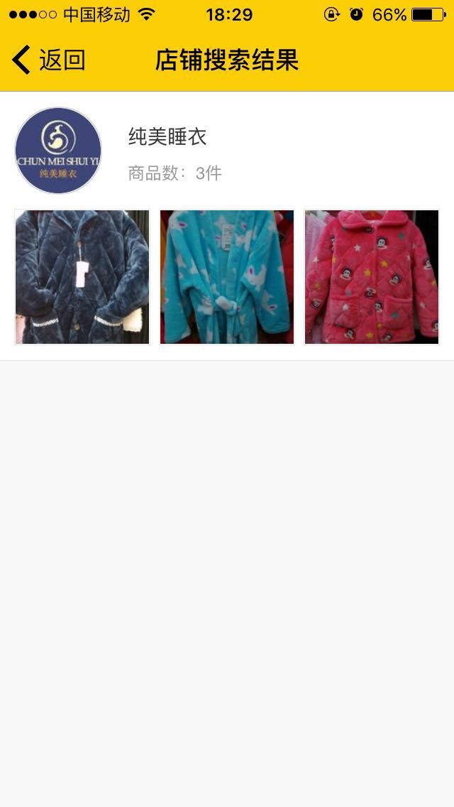 通过“ 纯美睡衣 ”搜索商品是搜不到的,但是通过搜索店铺“ 纯美睡衣 ”是可以的。