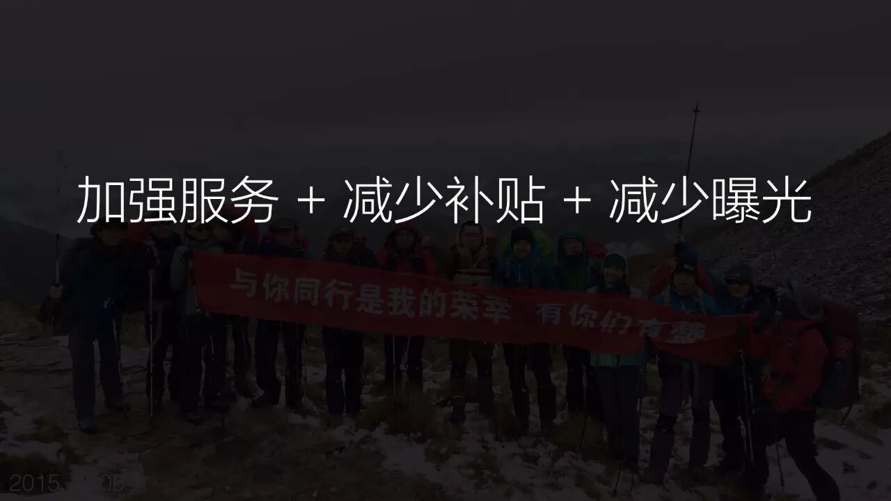 2015年国庆节,有赞管理团队前往“鳌太”徒步。五天,海拔3780米。在山上大家思考了有赞的未来,觉得整个行业包括有赞自己都太浮躁了,需要沉淀下来好好做商家服务的深度,有赞未来应该是一家彻底的商家服务公司。决定:加强商家服务,让商户满意;减少补贴,商户不能是因为有赞做了交易手续费补贴来的,倒逼自己给商户提供更多软件系统和服务的价值;减少有赞在市场上曝光所花费的精力,把所有精力都放在做好产品和做好服务上。