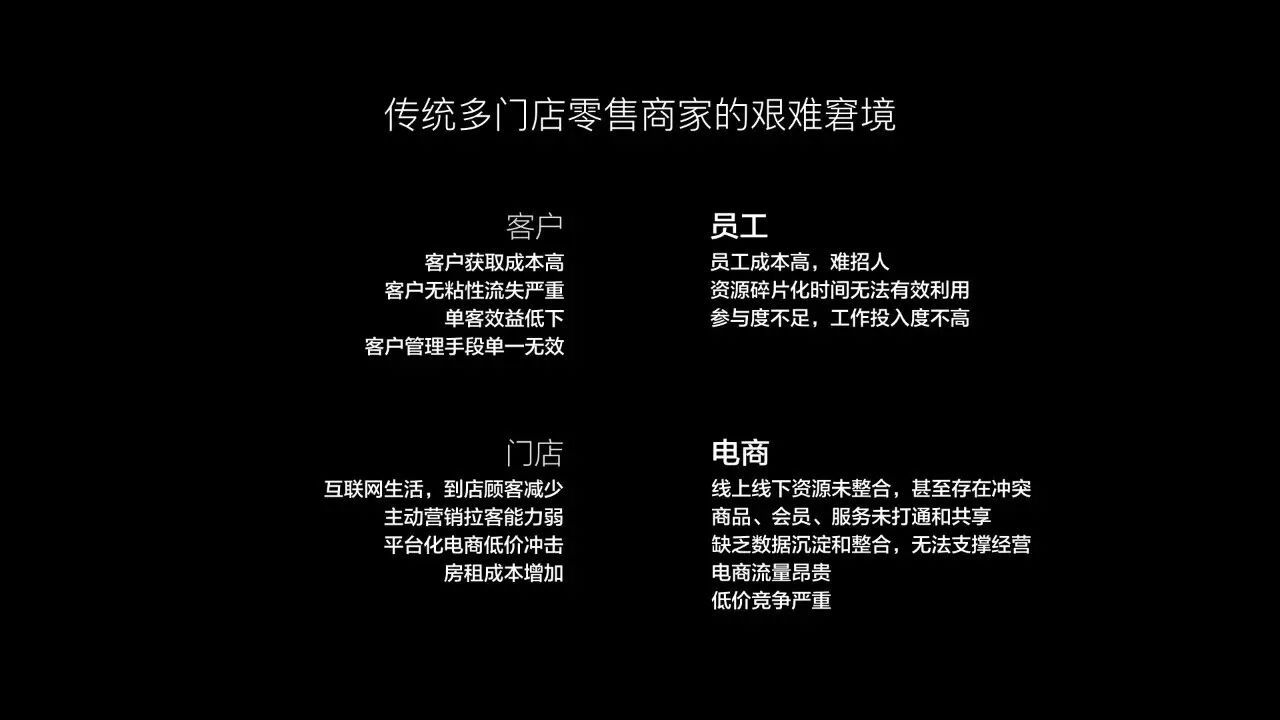 商家的核心经营场景和未来趋势:无论是传统电商还是传统门店企业,都需要搭建自营可控的独立商城,门店顾客引导关注微信公众号成为粉丝留存、互动、促活;线上互动营销引导粉丝到店消费。