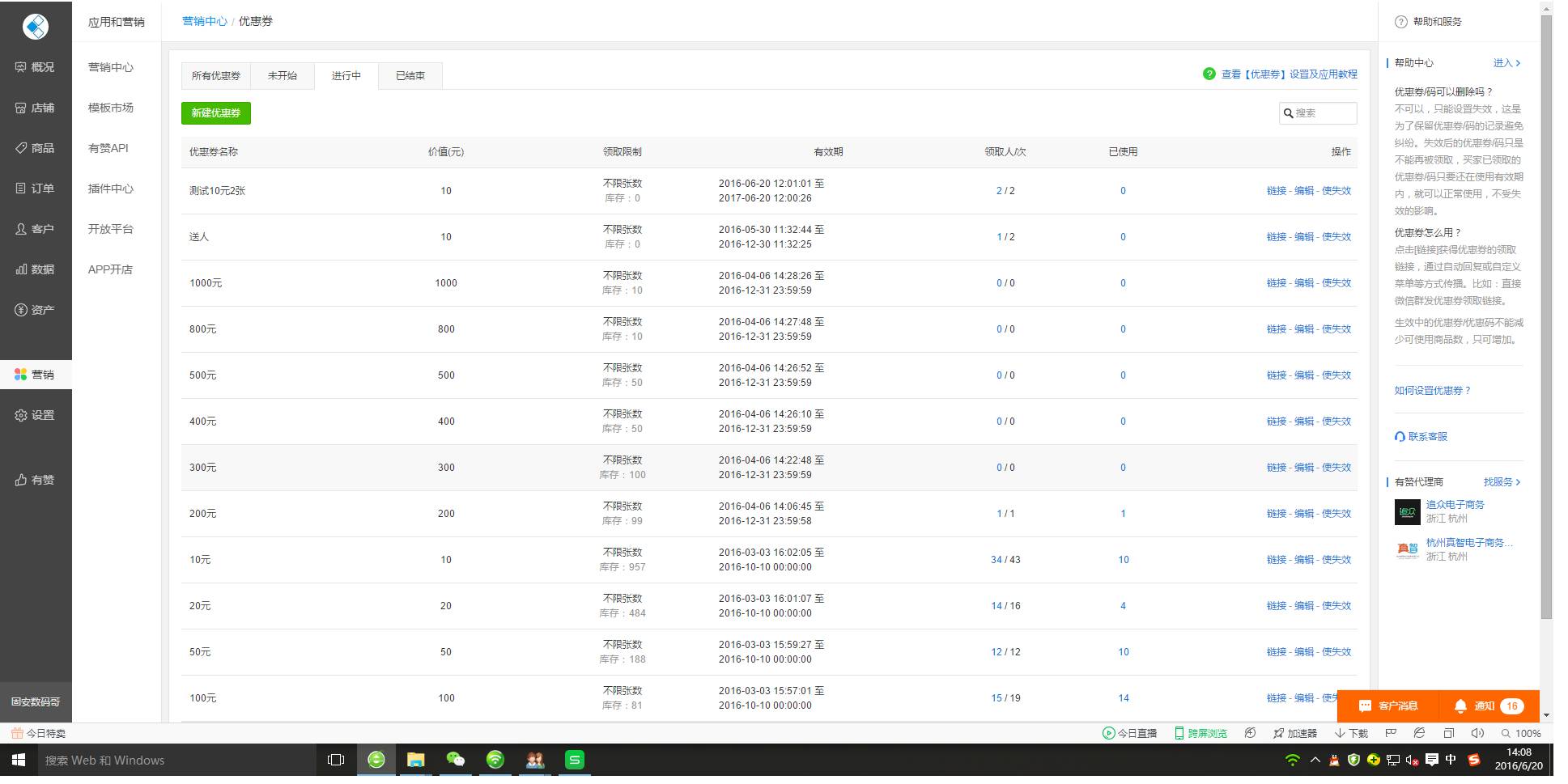 我门有赞商城的优惠卷客户无法使用了!请问优惠卷功能有开启关闭操作吗?
