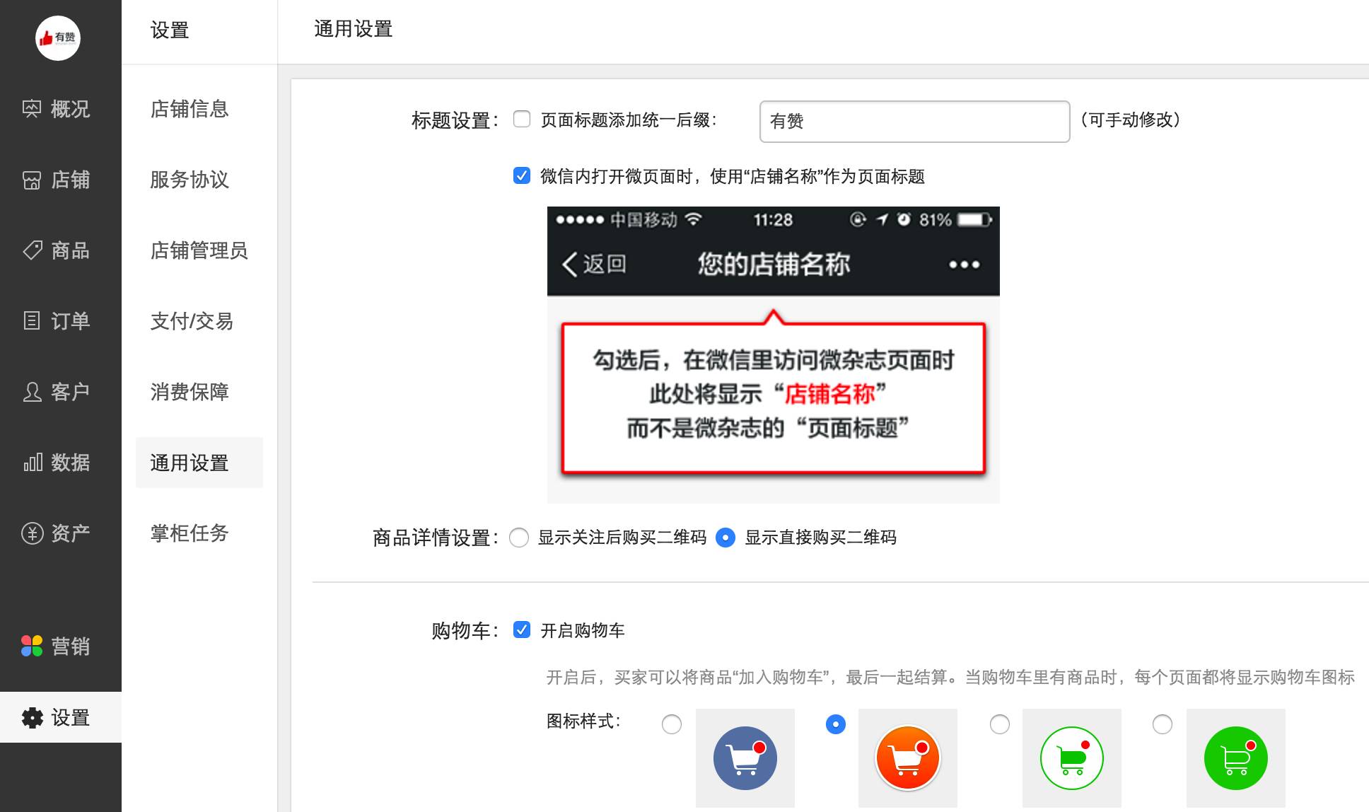 ps:所有功能都在有赞微商城后台 —设置-通用设置 里找到哦。