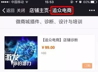 页面标题添加统一后缀,将微杂志或商品分享到朋友圈时,标题会带上后缀内容。例如:勾选此项并添加后缀内容为“追众电商”,因此,在所有的页面标题后缀均会显示“追众电商”。如下图: