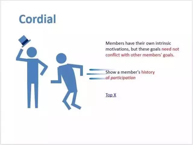 迷之 Cordial,这个单词的中文解释是热忱友善的。这样的社区里,用户有各自的动机、目标,他们自己的目标不会和他人的相干扰或冲突。意思就是各自野蛮生长,互相比较友好。