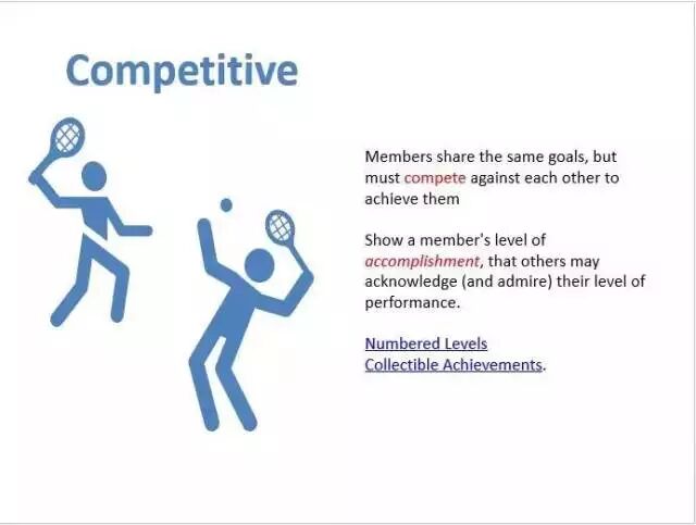 这些设计具体怎么使用,在什么情况下使用呢?雅虎又提出了竞争关系的理论:可以根据用户间的竞争关系(competitiveness),来确定产品应该用什么样的激励制度。