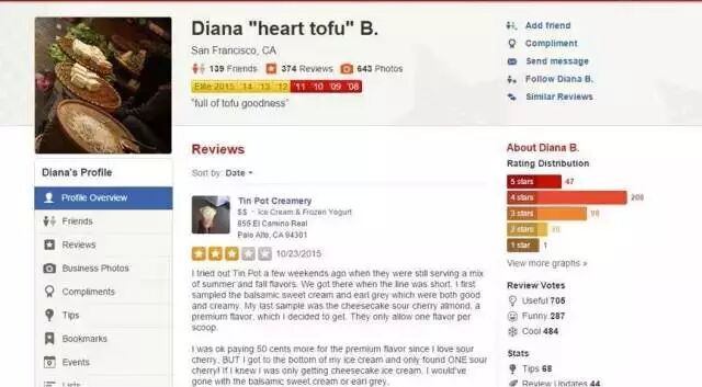 Yelp 没有分明的等级制度,只是在鼓励一帮人,由这帮人去产生优质的内容,吸引更多的人参与。