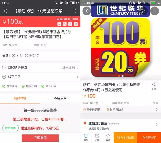 世纪联华借有赞卖了11万张优惠券 ,销售额破1100万