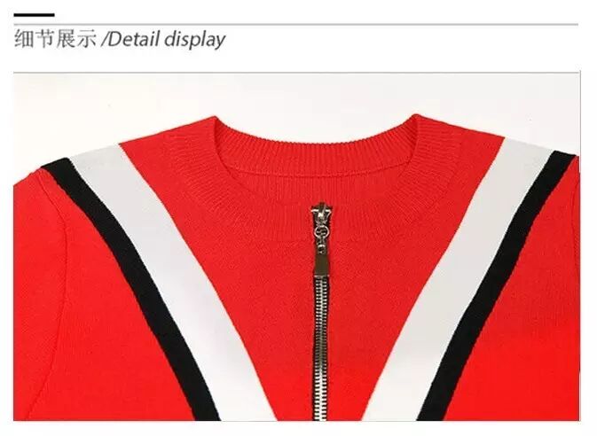 半开襟套头修身针织连衣裙 >>点击购买版型设计:利落修身的针织连衣裙,加入明快的色彩装饰,时髦度大大提升,同时营造出复古运动的新潮风范,颠覆经典审美,让人在芸芸众生中脱颖而出。衣领特色:清爽利落的小立领剪裁结合半开襟拉链设计,释放出一派摩登中性韵味。