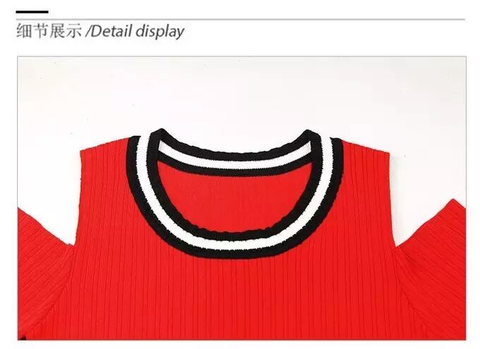 条纹露肩修身针织连衣裙 >>点击购买版型设计:复古运动风潮席卷整个时尚圈,带来全新的配色理念及剪裁手法,抢眼的撞色条纹与性感露肩设计,结合柔软有弹的针织材质,让整体造型迸发出活力气息。
