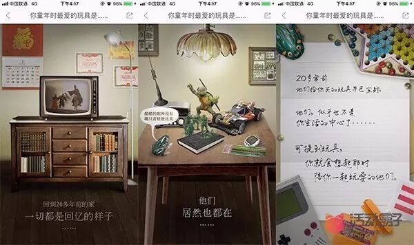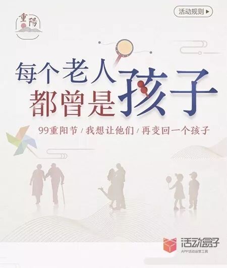时光隧道这一H5页面,用于帮助用户唤醒童年记忆,童年有父母陪伴我们长大,如今我们陪伴父母变老,重阳节就让我们将父母宠成小孩子,这么一种氛围令用户自发地参加到活动中来。