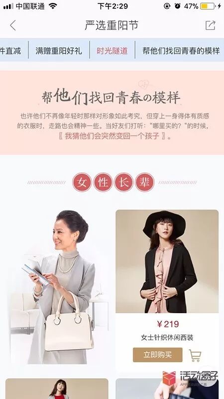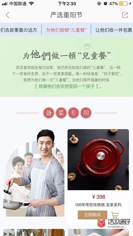总结:网易严选APP讲了一个关于父母与陪伴的故事,唤起了用户的童年回忆,给了用户一个重阳节参加活动的理由,再用打折促销的方式,刺激用户购买商品。你呢,想好用什么方法刺激用户参加到你的活动中来了吗。