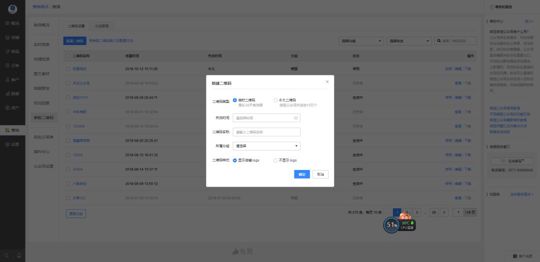 路径:有赞后台-营销-微信公众号-新建二维码。