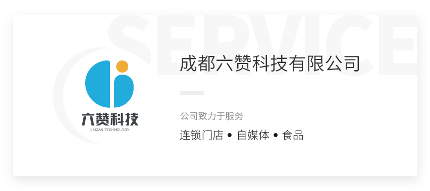 成都六赞科技有限公司致力于为移动互联网时代的商家提供店铺装修、运营策划、移动新零售咨询、商城搭建、整店托管运营、渠道对接、摄影摄像等服务,是有赞特约授权的认证服务商。