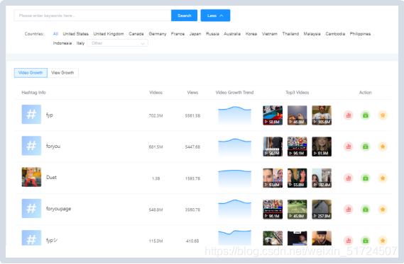 当然官方提供的工具只能查看自己的数据分析,若是你想要查看更多的达人数据,你需要借助一些tiktok数据分析工具,类似于GugeeData