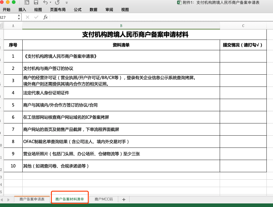 二、相关资料注意:银行申报要求商家提供的备案资料(全都必填),点此下载资料 1、《支付机构跨境人民币商户备案申请表》、《商户备案材料清单》请填写附件1。 2、支付机构与商户签订的协议 (协议签订主体目前和备案主体保持一致即可) 注意:填写附件时注意需要盖骑缝章。 3、境内主体资质需提供材料: (1)境内主体商户需提供:(营业执照/开户许可证/法定代表人身份证件正反面)PDF扫描件均需加盖境内主体公章且身份证正反面需在同一张纸上 (2)境外主体需提供证件:(BR/CR等)法人证件正反面需扫描在同一张纸上并含有境外主体公章,BR/CR也需要加盖主体公章;如港澳台人士,则需提供印有境外主体公章的通行证正反面在同一张纸上的PDF扫描件(请注意:BR需提供有效期内的;证件资料请勿有阴影和遮挡); 4、商户与其境内/外合作方签订的协议/合同,可以参考附件3,但是不要仅仅用模板,重点是需要说清楚业务模式、货权关系和结算逻辑,若无法在运营委托协议中说明货权关系和结算逻辑的,还需提供采购协议(采购协议需说明商品具体的数量金额等且双方盖章),如果商家自己已有协议,且符合要求,需要提供原件或者复印件加盖双方公章,境外主体没有公章的话,加登记人签字。